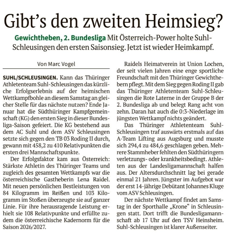 A-Team Lifting Augsburg – KG Suhl/ Schleusingen