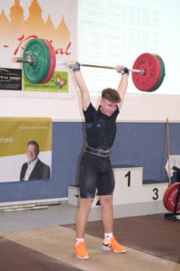 mit einem Körpergewicht von 74,1kg erzielte er die Bestleistung von 77kg im Reißen und 90kg im Stoßen – unseren herzlichen Glückwunsch –